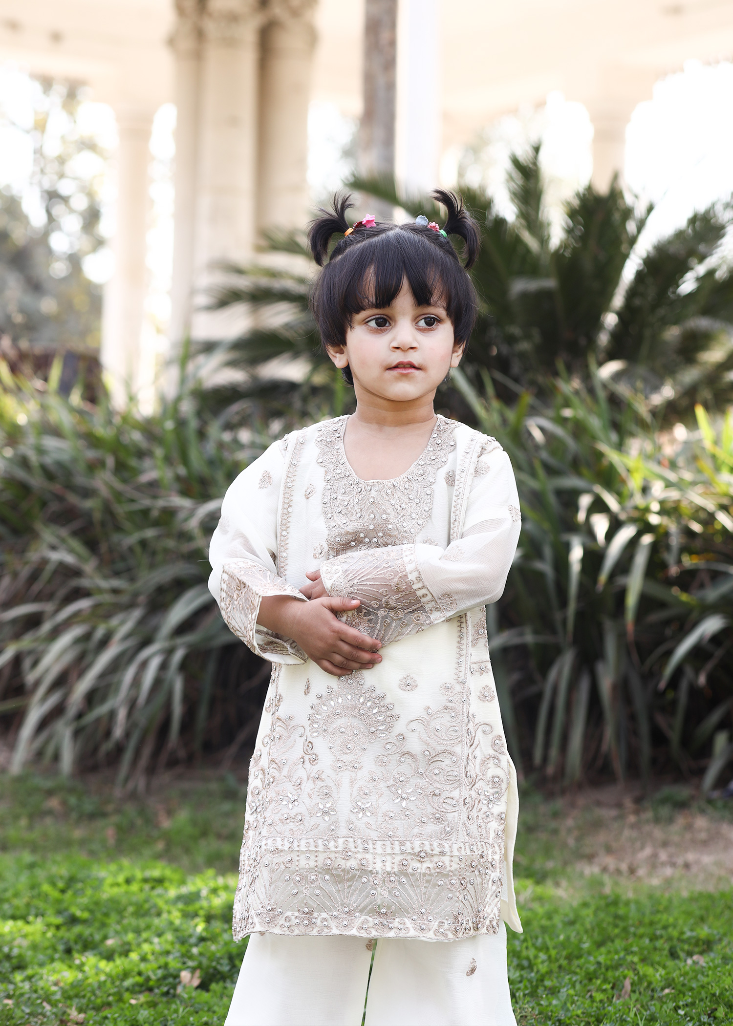 Whether it’s a festive celebration or a formal event, this embroidered white kurta set is a timeless addition to your little one’s wardrobe.